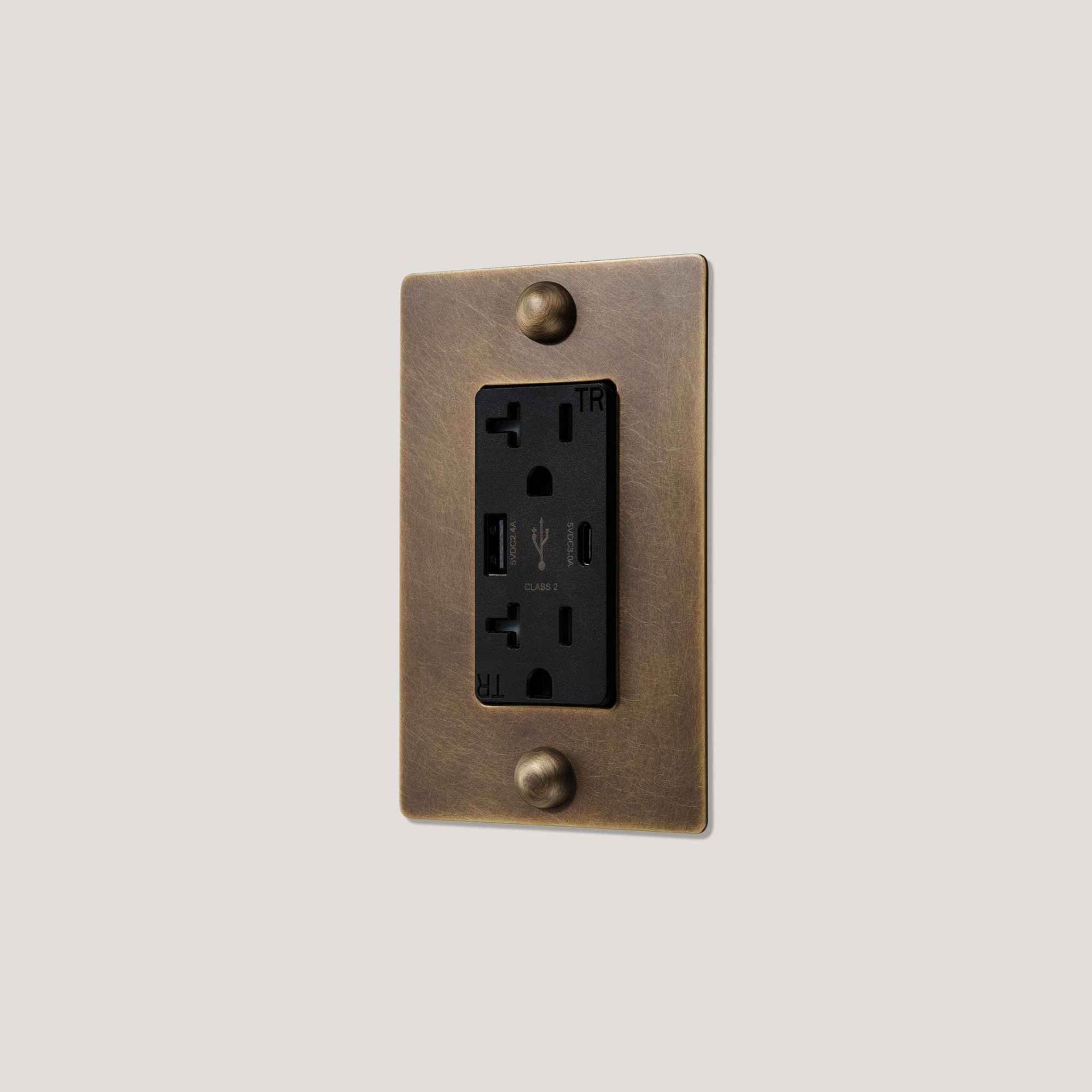 Plank Hardware JASPER 1G 20A USB Outlet - Antique Brass Plank Hardware JASPER 1G 20A USB Outlet - Antique Brass Plank Hardware JASPER 3G Toggle Switch - Antique Brass Plank Hardware JASPER 1G 20A USB Outlet - Brass