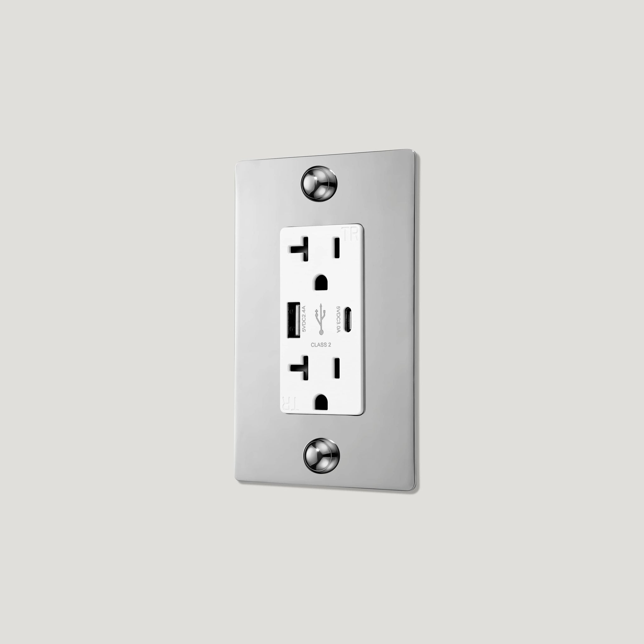 Our JASPER 1-gang 20A USB Outlet combines power and fast charging in one sleek plate, designed to complement the full JASPER switch and outlet range.