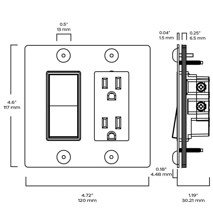Our JASPER 2-gang Rocker Switch & Outlet combines lighting control and power in one sleek plate, the perfect solution for a clutter-free wall.